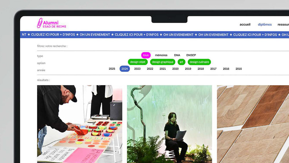 La plateforme propose un système de filtres permettant d’affiner la recherche, affirmant ainsi sa fonction d’archive tout en adoptant une esthétique dynamique, à la fois dans son arborescence et dans son identité graphique.
