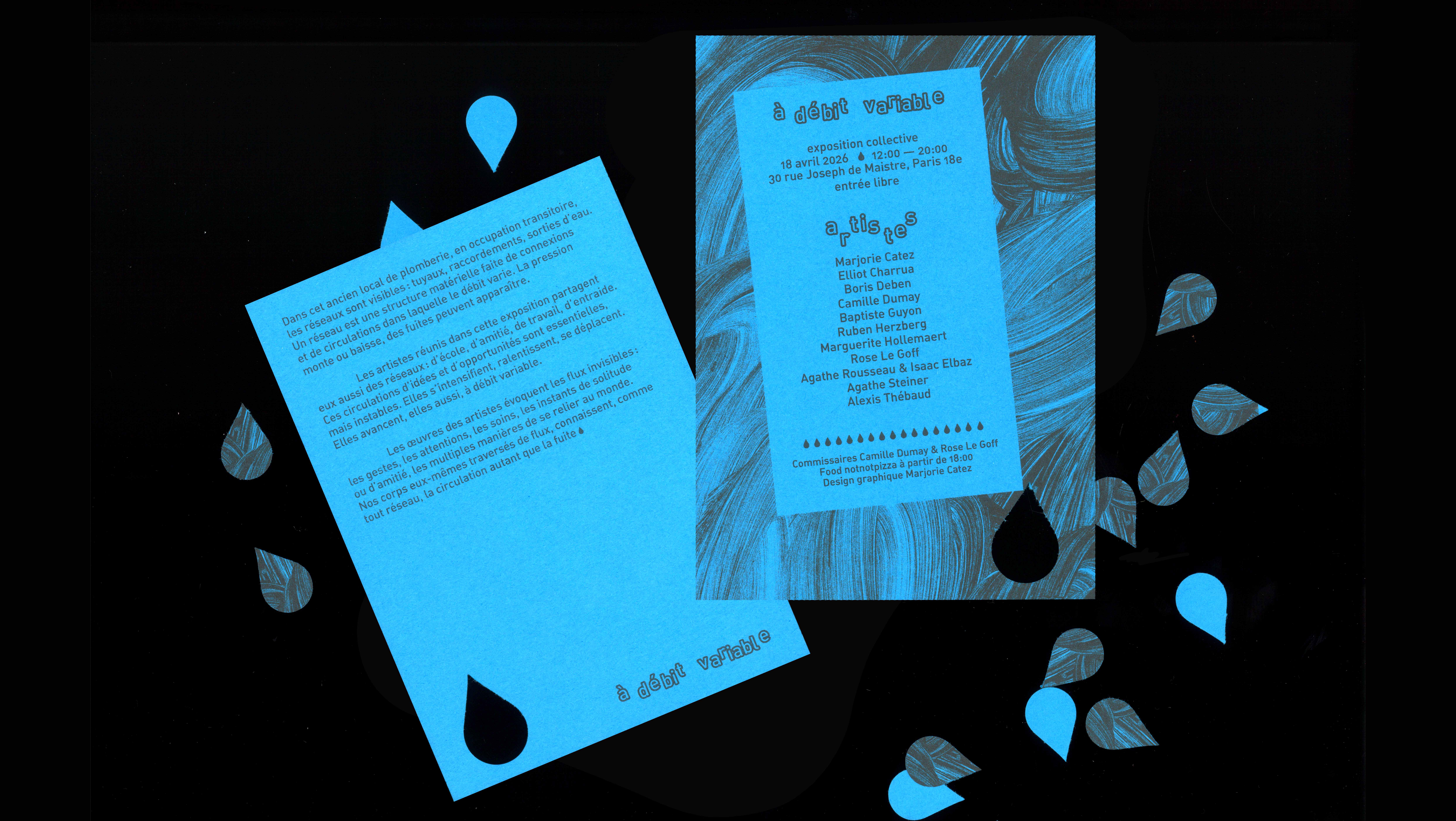 Un parcours, des bruits de couloirs, traverser les projets étudiants et les visages clés de cette école. C’est une communication qui part de l’objet de l’affiche et qui se découpe, se déploie pour faire éclore son design sur les différents objets de la communication (tote bag, enveloppe, lettres, étiquettes, affiche A3...) les objets deviennent des bribes de cette journée. (travail en collaboration avec 2 étudiantes.)