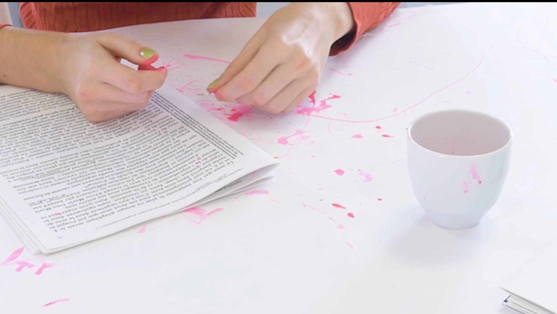 Interprétation d’un contenu musical inconnu, à travers une nouvelle narration : sensuelle et érotique. (technique : scan, impression, agrandissement). Un protocole prend place, aucune action numérique, simplement le scan, l’agrandissement, et la réimpression du contenu. Une danse sensuelle prend place, l’intimité du livre, l’entrée dans l’encre, sa rugosité, sa transparence, des caresses…