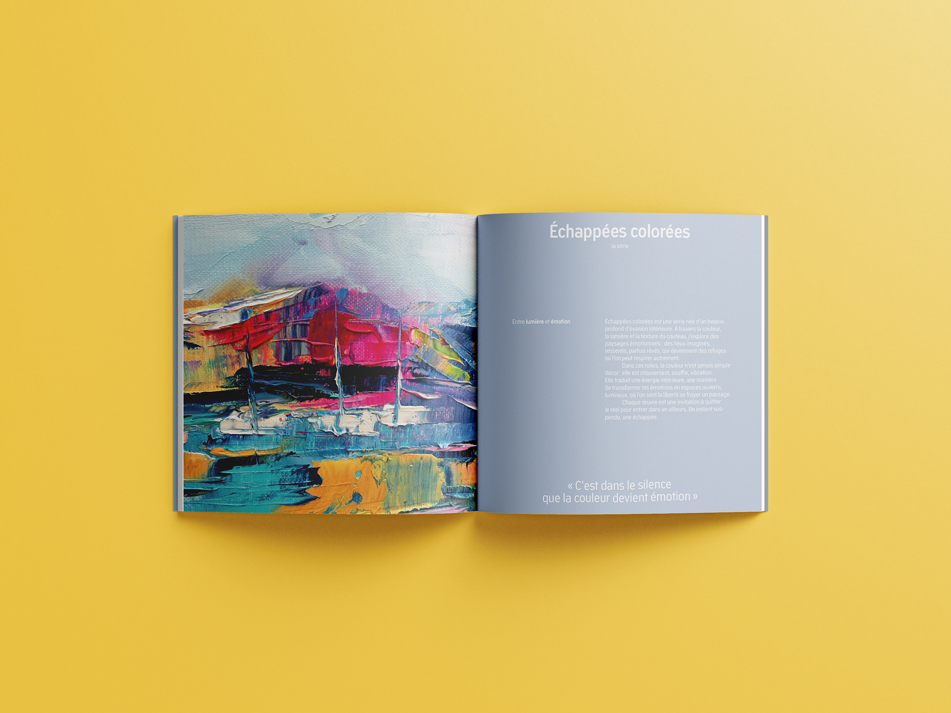 Échappées colorées est la série de peinture au couteau de l'artiste Fadi, l'édition du même nom est composée de son travail, explorée par le biais d'une immersion dans les détails de ses œuvres, guidée par leurs titres, nous traversons l'édition comme une escapade.