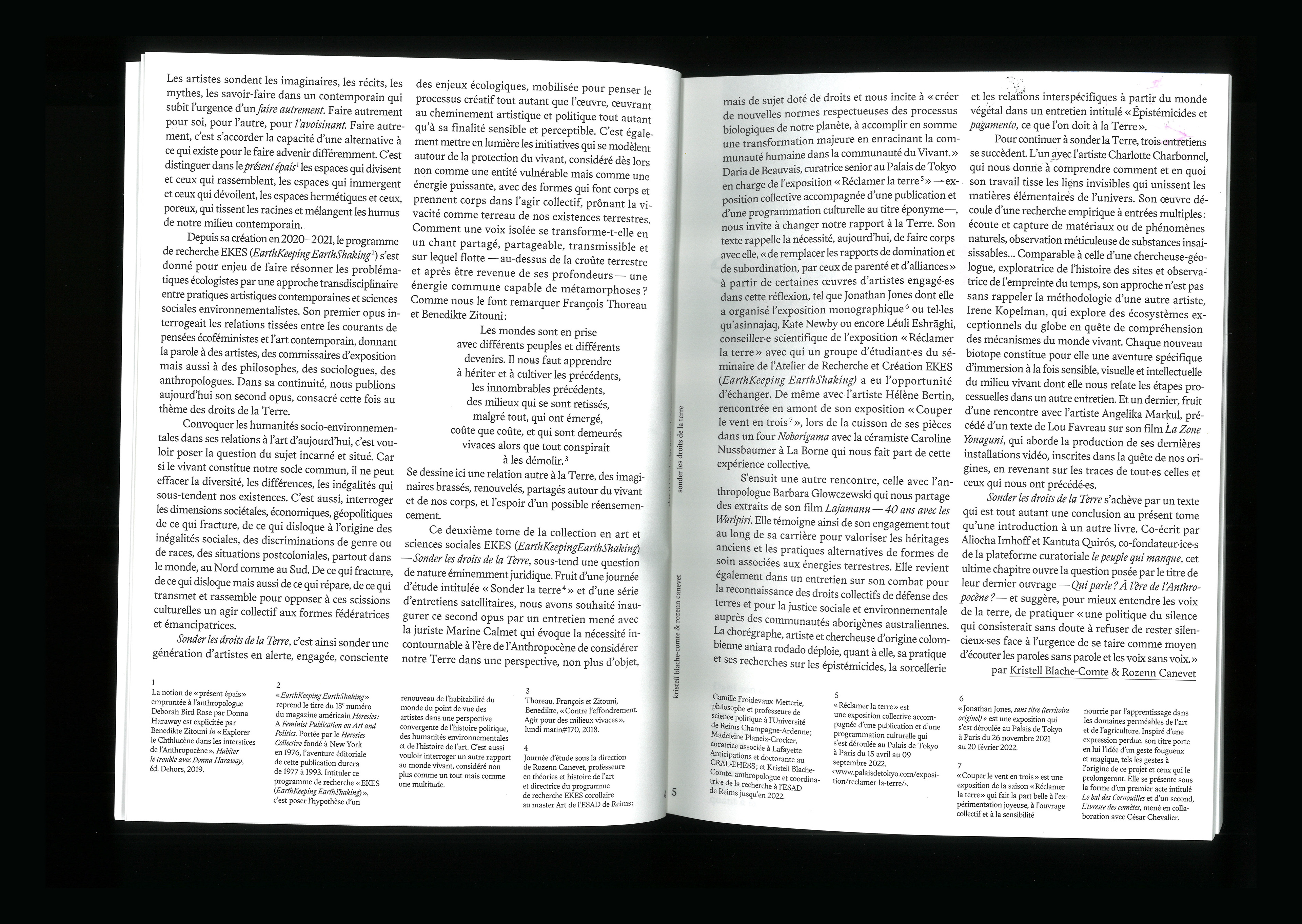 le lancement au frac champagne ardrenne: https://frac-champagneardenne.org/agenda/sonder-les-droits-de-la-terre-soiree-de-lancement-de-la-revue-ekes-n02