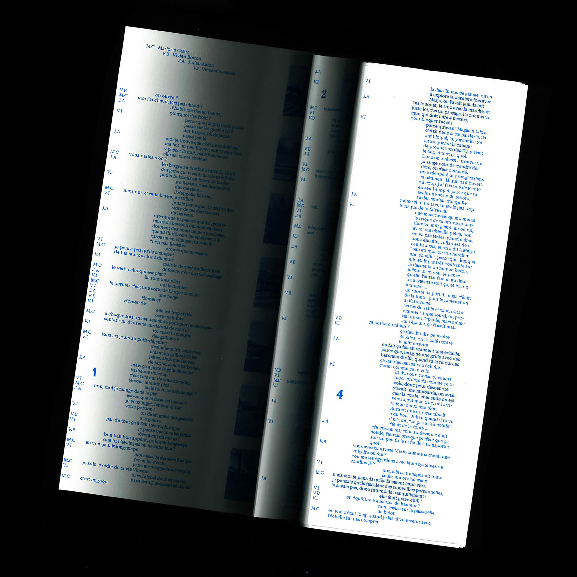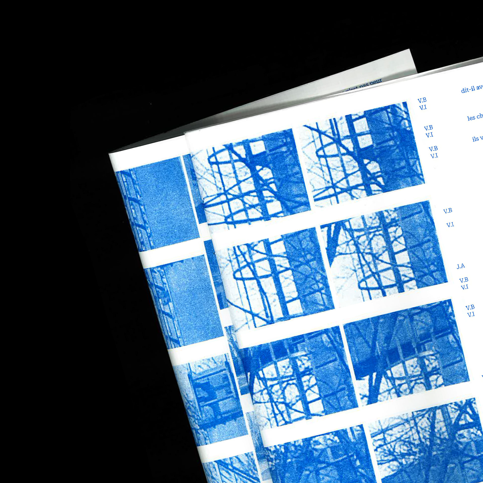 Interprétation d’un contenu musical inconnu, à travers une nouvelle narration : sensuelle et érotique. (technique : scan, impression, agrandissement). Un protocole prend place, aucune action numérique, simplement le scan, l’agrandissement, et la réimpression du contenu. Une danse sensuelle prend place, l’intimité du livre, l’entrée dans l’encre, sa rugosité, sa transparence, des caresses…