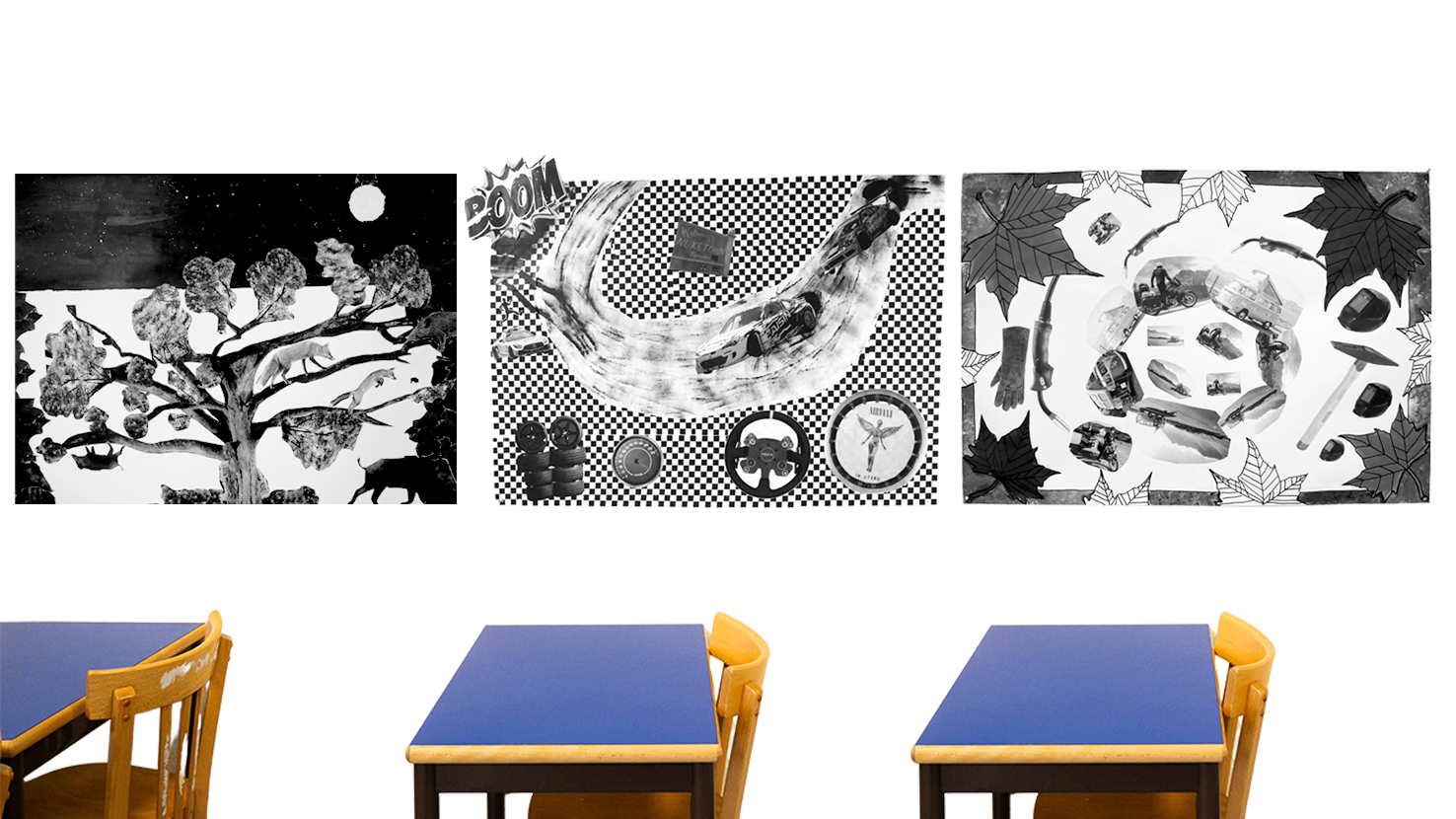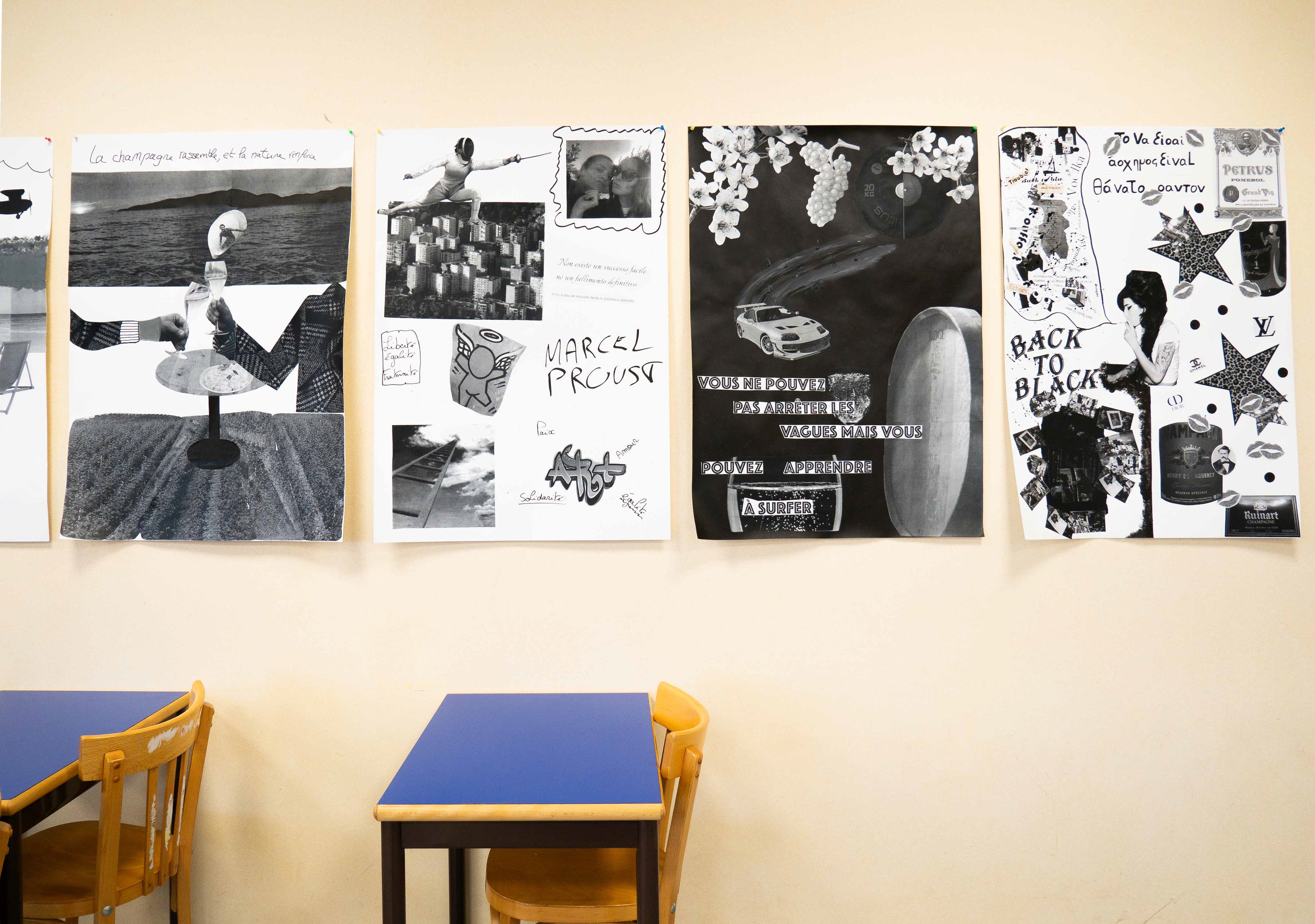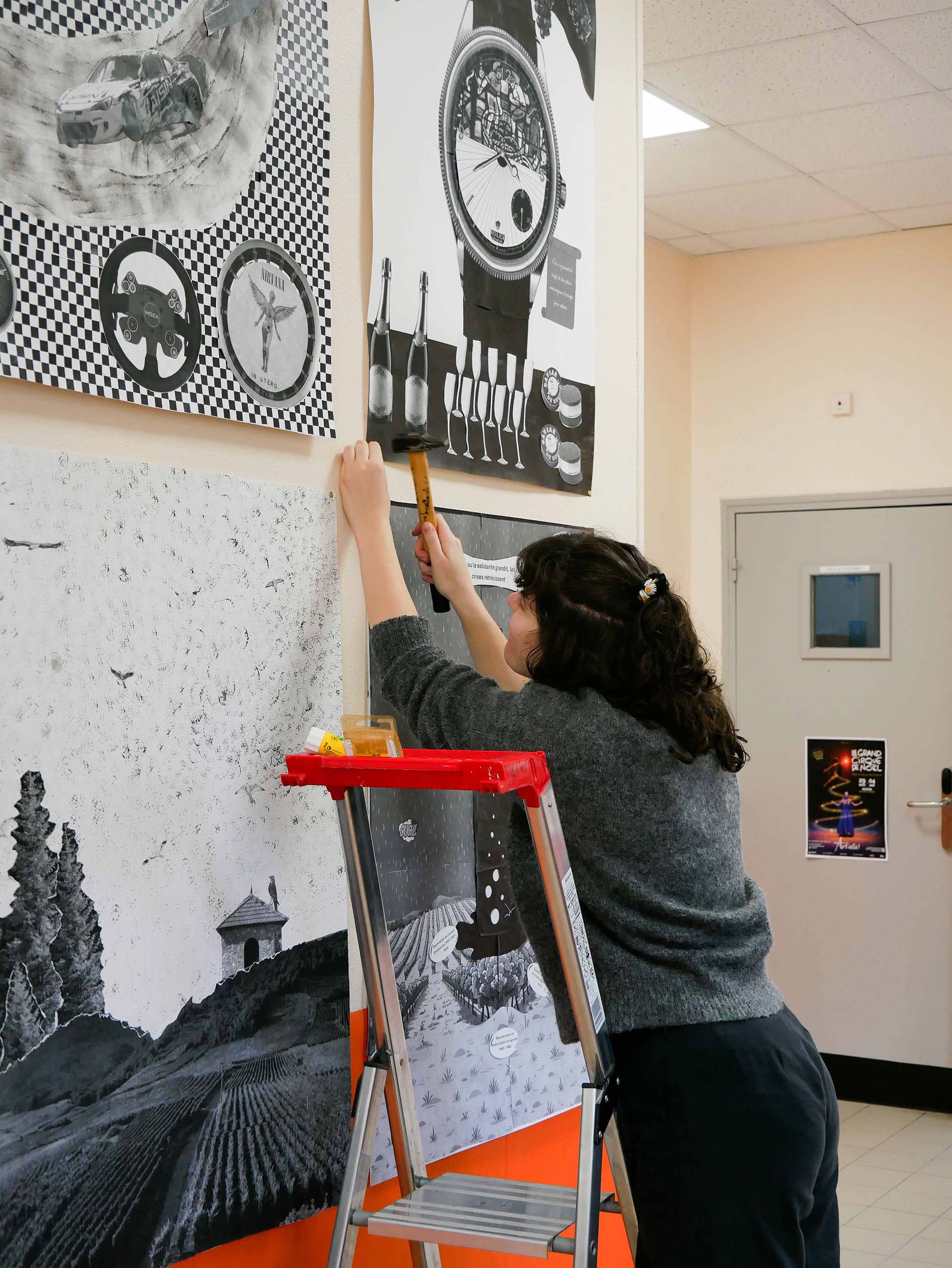 Travail en noir et blanc, réalisation de grands formats d’affiches, créations individuelles et collectives…