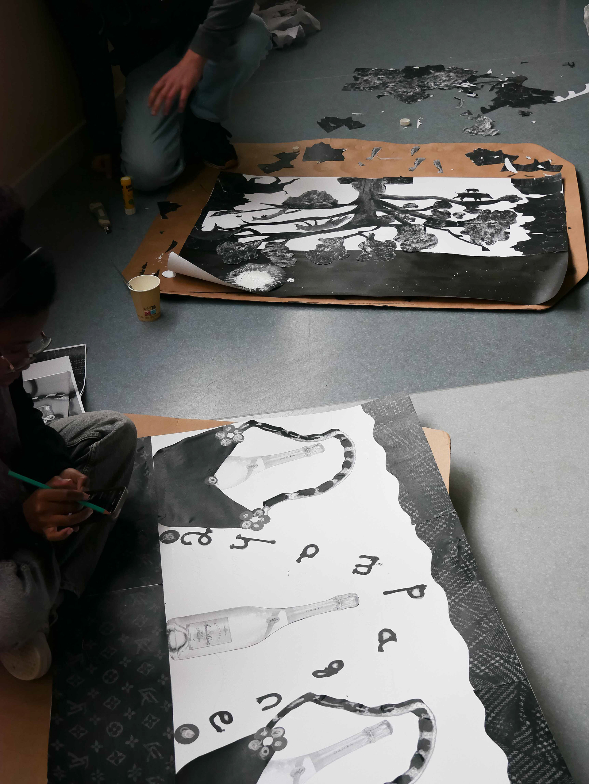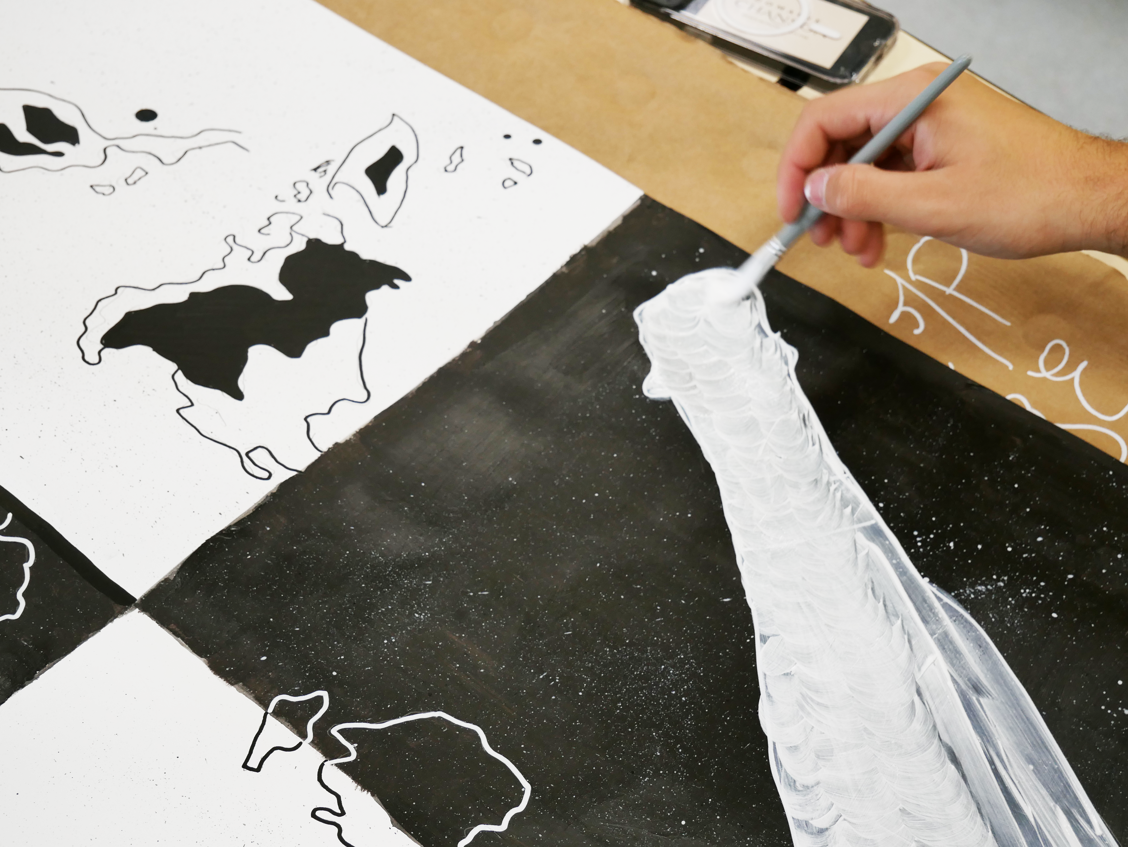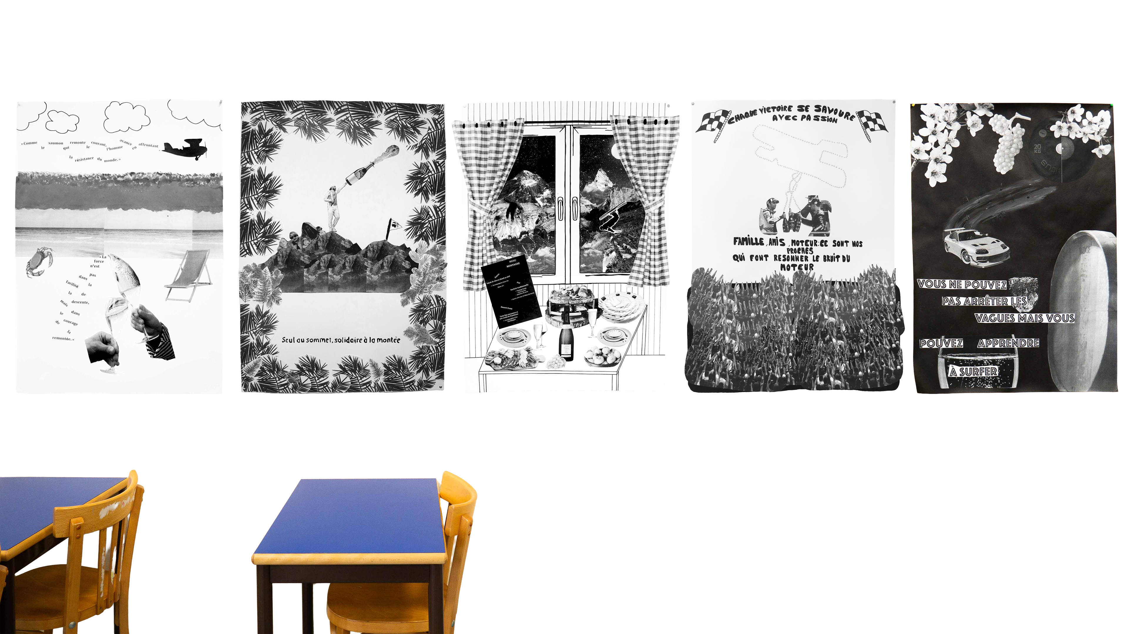 Travail en noir et blanc, réalisation de grands formats d’affiches, créations individuelles et collectives…