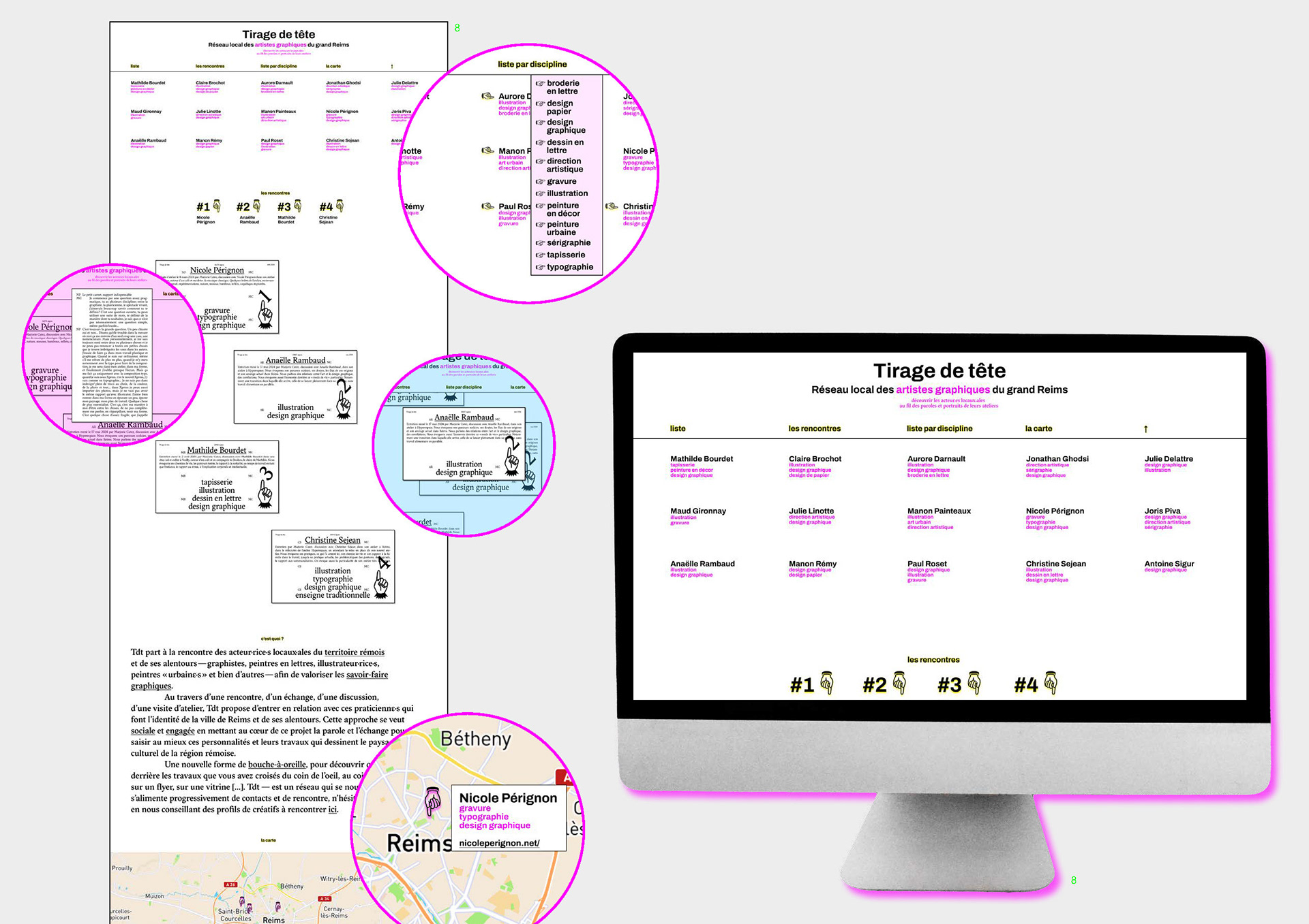 Dans le cadre de la première année de Master consacrée à la recherche, je me suis concentrée sur un sujet qui m’est cher dans ma pratique. Celui d’avoir la main sur le processus de création des objets, c’est-à-dire, participer activement, mentalement, mais aussi physiquement à la conception de mes objets. Dans un contexte social, politique et économique de la dématérialisation, mais aussi d’une perte de regard sur nos productions, cet écrit traverse crescendo un panorama d’artistes graphiques inspirant, nous montre comment et pourquoi garder la main sur nos objets imprimés est important, sensible, et source d’évolution pour la pratique.